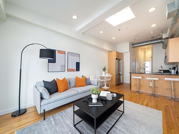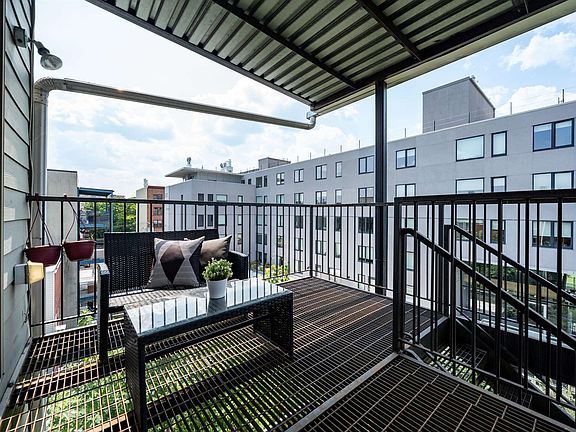 This one bedroom on Monroe is the perfect home to start in Hoboken for investors or first time buyers! On the top floor of the building, this unit is tranquil and private, no noise from upstairs neighbors! The unit also features beautiful hardwood floors, soaring ceilings, central air, a private balcony and a washer dryer in-unit! The open floor plan living area has plenty of space to eat, relax and host. The kitchen boasts track lighting, stainless steel appliances, plenty of counter space for cooking, and a full breakfast bar. The bedroom has incredible storage options, and the bathroom has gorgeous modern finishes. All this only a few blocks from Church Square Park and with easy access to the bus to Manhattan as well as the PATH trains and NY Waterway Ferry! Schedule your showing today!