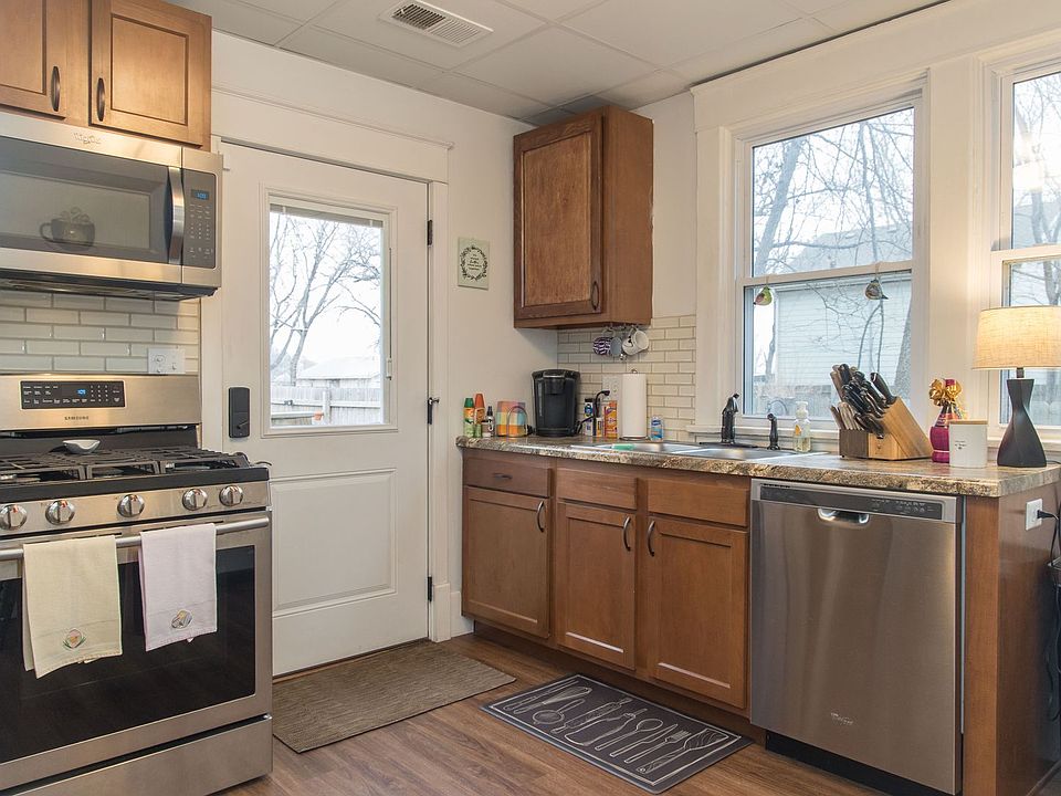 This 2-story renovated home features stainless appliances and a gas stove. The main floor features an open living area, an updated kitchen, and LVP flooring throughout. Enjoy nights outside on your patio in private thanks to the tall fenced-in yard. Washer and Dryer included.