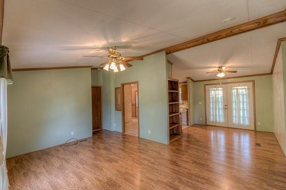 Perfect size home for starting out or retiring. Sweet double wide on permanent foundation with a split bedroom design. Move in ready- Some upgrades in the past 5 years are metal roof, new a/c unit, new walk in bath tub, new commodes, some appliances. Laminate and ceramic tile flooring in main living spaces. Laundry in master bath is so convenient! Also included in the sale is a storage building with underground electrics and a carport. Decks in front and back-sit back and enjoy life!