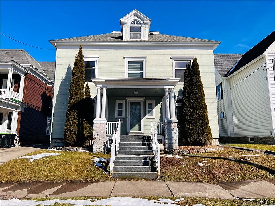 Truly A Must See Home! An Exceptional & Spacious Property with Lots of Character & Charm! As soon as you walk in the front foyer you will be welcomed by the beautiful staircase and hardwoods, stained glass windows and its light and bright space! The first floor features a large living room with gas fireplace and built-ins, huge formal dining room that can be split into an additional living/sitting room, updated eat in kitchen with a butler's pantry, new luxury vinyl flooring and updated appliances. 1st floor also features an updated full bath with claw foot tub! Two stairways to access the 2nd floor which features 4 spacious bedrooms, a 2nd updated bath, an office space and reading nook! The 3rd floor has been partially converted to living space which can be used as 2 additional bedrooms! Also, crawl spaces for storage. There is a sunporch off of the kitchen that leads to the nice size yard and 2 stall garage! Convenient Village location! Other great features include, mostly vinyl replacement windows, central air and new electrical service (1 1/2 years), tankless hot water system, freshly painted....what are you waiting for? Schedule your showing before it's too late!
