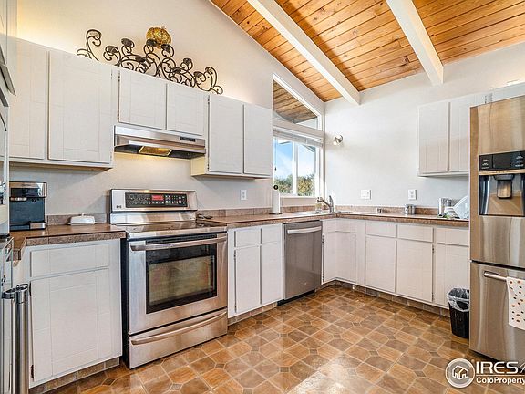 BACK on the market! Don't miss your chance to own this expansive home on 2.5 acres of land with room for your animals! The homes in the Sunnyslope acres are "highly" sought after. Over 2500 SqFt. of living space, you are going to love the tranquility of country living just minutes from downtown Loveland. The open floor plan upstairs includes kitchen/ living room with a stunning number of custom oversized windows. Beautiful wood beams and tongue and groove wood slat accents add charm to the impressive, vaulted ceiling. A wood burning brick fireplace to cozy up for those cold evenings. The walkout basement includes a family room, 2 bedrooms and an additional room that could be used as a bedroom/office. The basement also leads to the backyard leisure area and a 2.5 acre lot, ready to develop to your vision. Enjoy the endless possibilities this home has to offer! A large asphalt pad that once served as a tennis court can be restored or used for RV parking. 2 sheds on the property included in the sale. The garage also has a 220 outlet. Located near Boedecker and Lon Hagler reservoirs and shopping within a short drive to downtown Loveland you can't beat the prime location! HOA is for road maintenance only!