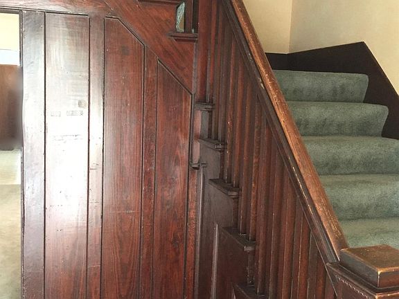 Two story home with white front porch - original wood stairway at entry and large great room on main floor with room for TV viewing & game table! Kitchen with eating area, main floor laundry and exterior access to deck. Upstairs has three bedrooms and toilet room. The garage is a woodworker's dream!! Two car garage with entire second floor with a wood shop plus toilet. Easy garage access from alley. A must see