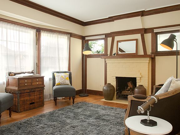 2+ bedroom, 1 bathroom. This Rockridge brown shingle is ideally located on a tucked-away street just 2 blocks from College Avenue shops and restaurants. Bursting with original character, the public spaces feature a brick fireplace, box beam ceilings and a built-in china cabinet. There are two bedrooms plus a delightful sun room that would make a great home office, guest room or sleeping porch. There's a full basement with potential for expansion, and a sunny fenced back yard. Recent upgrades include refinished hardwood floors throughout, fresh paint and a new roof. Commute options are easy with BART and casual carpool nearby.