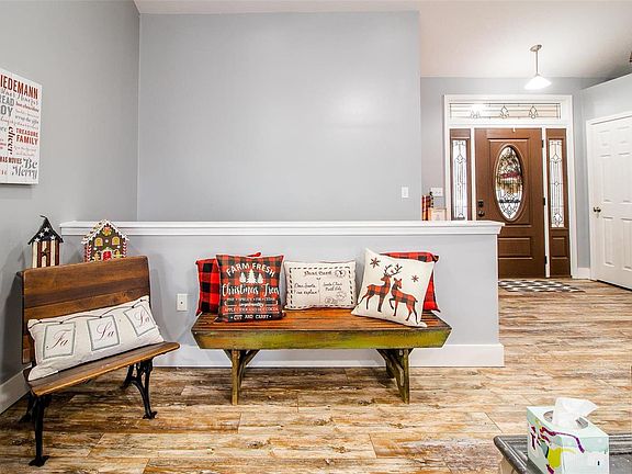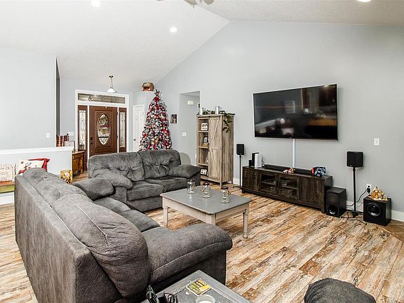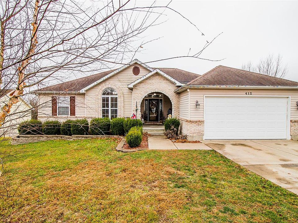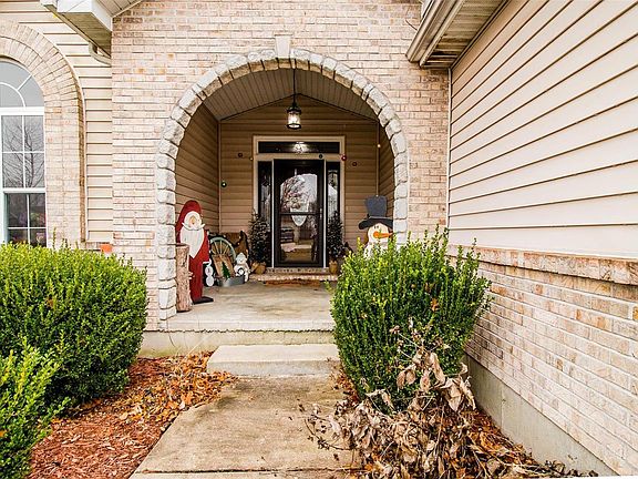A great opportunity to join the New Haven School District! This 5-bedroom, 3-bath home is at the edge of city limits, near the top of Trails Hill. The stone archway over the deep covered front porch is a vision from the street. Inside you'll be impressed by the soaring vaulted ceiling & gas fireplace in the great room. Updated laminate floors flow throughout the main level. The breakfast room with bay bump-out has access to the deck overlooking the flat backyard that backs to woods. The kitchen features stainless appliances, cherry-stained cabinetry with ample counterspace, & a large pantry. The laundry & 2-car garage with workbench are located off the kitchen. The owner's retreat on the opposite side of the home features a vaulted ceiling, deep double closets & 4-piece bath. Two additional bedrooms are located on the main floor & another two in the lower level. Downstairs you'll also find a full bathroom, media room, & unfinished rec room that walks out onto the patio. Tour it TODAY!