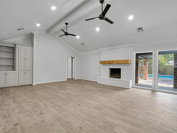 Completely renovated home on half-acre lot featuring 3 bedrooms, 3 baths, and an open floor plan comprising a living room, dining area, and kitchen. This 2703 sq. ft. residence boasts unique finishes throughout, from the beautiful kitchen with updated cabinets and black stainless appliances to the primary bathroom's stunning walk-in shower and double sink vanity. The property includes multiple versatile spaces, such as an office, fourth bedroom, or formal dining area. Additionally, there's a spacious living area with a wood-burning fireplace, vaulted ceiling, and built-ins. The home offers a laundry and mudroom with ample storage, a full bath and awesome deco style flooring. Outside, there are both attached and detached 2-car garages, new wood fencing, and a refurbished inground pool. Plantation blinds, contemporary light fixtures, and extensive canned lighting add to the charm of this unique property.