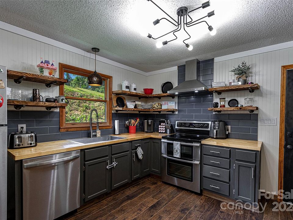 - Included: Dishwasher, Double Oven, Electric Range, Electric Water Heater, Exhaust Hood, Microwave, Refrigerator