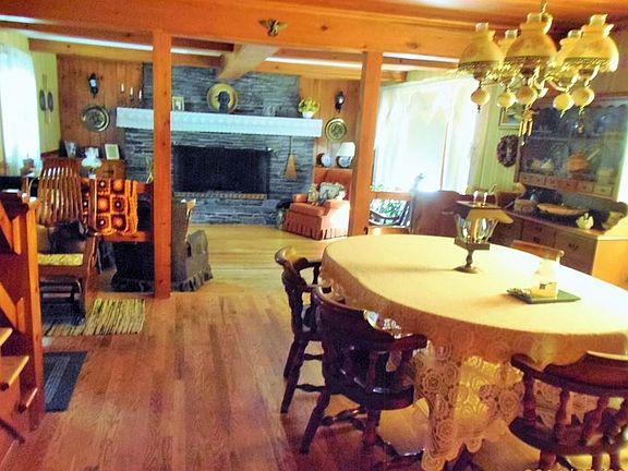 This quality built 7 room Cape has been meticulously maintained by its current owner. The open dining and living room areas enable you to enjoy the cozy warmth of the oversized fireplace from whichever room you are seated. The wood floors sparkle throughout. The living space offers natural wood ceilings and walls. There are lots of built-ins, closet space, and storage in the eves. The furnace has been updated and windows have been replaced throughout. The wood furnace in the basement could serve as a possible alternate heat source. The vinyl siding makes the exterior of this home almost maintenance free, so you will have more time to relax and enjoy the country air. This home is located in the desirable Meadows area of town.