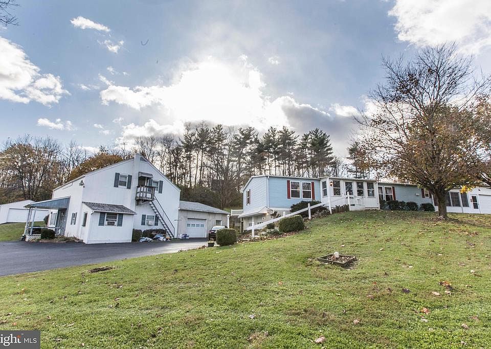 Charming rancher, modular construction, on permanent foundation with 2 car garage, in perfect condition located on a lovely 1+ acre lot. Property has a detached 2 unit apartment building that brings in a good rental income around $1,200/month. Main house has 2 car garage, large partially finished basement. Main floor has large master suite, complete with large closet, and full bath with tub/shower, and walk in shower. Large eat in kitchen complete with island. Two additional nice sized bedrooms plus another full bathroom. There's a nice front covered porch, sunroom, and lots of additional covered storage areas. In addition there's another 2 car garage. Unique property, ideal for many different uses. Apartments both have 2 bedrooms, one has a 2 car garage, the other has a 1 car garage.