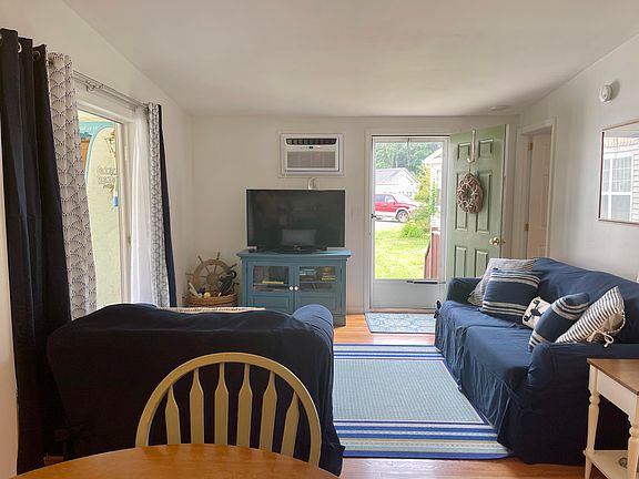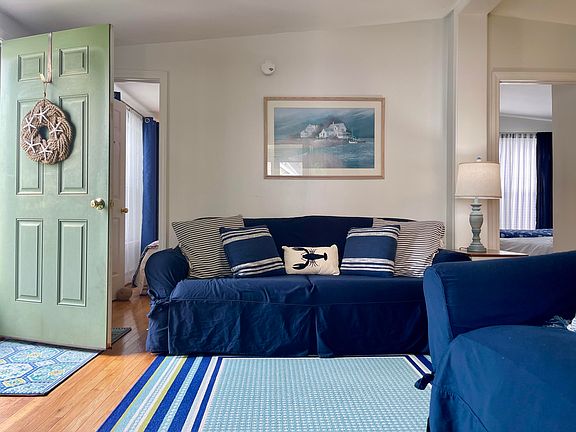 Inside, the cottage boasts a welcoming starfish layout with hardwood floors throughout the living room, kitchen, and bedrooms, creating a warm and inviting atmosphere. This fully furnished home has been meticulously maintained by the owners since 2007, with recent updates including new smoke and CO2 detectors in 2024, new air conditioning unit in 2022, and a fresh interior paint in 2023.