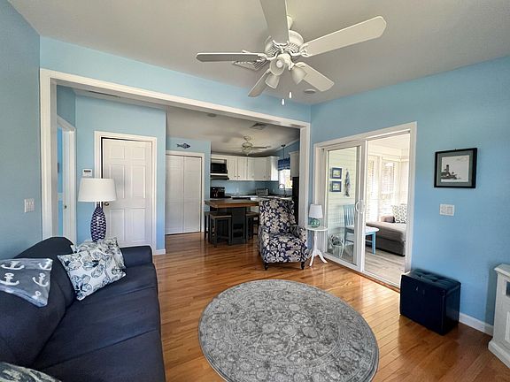 Mint condition and top shelf all the way, this cottage is located in a most desirable area within the complex. Privacy, parking, and pool are all bonus' in this sought after location. This charming cottage enjoyed many renovations/upgrades in 2021 including new floors in the bathroom and enclosed sun porch, new kitchen counters, new washer/dryer, new appliances, new front door, and so much more. This sweet as can be cottage has been owner occupied and lovingly maintained. Freshly painted interiors and tasteful decor throughout, make this the dream come true vacation home. Creatively and softly cleared