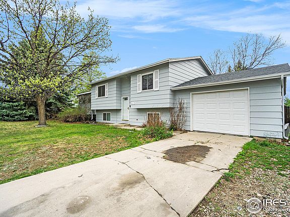 Rare find at this price point! Welcome home to this spacious 5 bed, 2 bath home in Skyview South, an awesome South FoCo location with quick access to FoCo, Loveland, I-25 and miles of trails & open spaces. Super cute main level w/ open kitchen concept that flows to a huge covered porch. Perfect for entertaining in all seasons! Large living room + 2 bed/1 bath on the main upper level. Lower level includes 2 bed/1bath PLUS bonus space for office, craft room, etc. Attached oversized 1-car garage. You'll love playing in this huge fenced yard! Big corner lot with good privacy and space. RV/trailer parking area on property! Minimal HOA allows for trailer parking. Fresh exterior paint, new roof & gutters & lots of fresh updates inside. This is one of the most up-and-coming neighborhoods in Fort Collins, making it a great investment! Don't wait on this one.