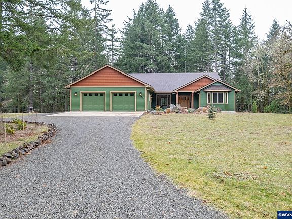 A peaceful and private forest oasis home just minutes from downtown Dallas! This custom built ranch boasts views of the surrounding 9.92 acres of fir and meadow. Features include; 9' ceilings and vaulted living room, beautiful woodwork, and kitchen island and gas range. A circulating pump provides instant hot water throughout! Outdoor features include fenced pasture, greenhouse, orchard, and barn.