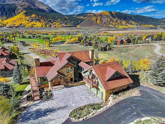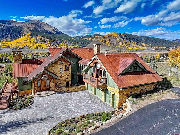 Exquisite Custom Colorado Mountain Home with Unparalleled Views. Nestled in the prestigious Skyland community, 412 Ridge Road is a one-of-a-kind luxury mountain retreat with unobstructed, panoramic views of the golf course, valley, and surrounding peaks, including Mt. Whetstone, Mt. Emmons, and Paradise Divide. Designed by Sunlit Architecture and masterfully built by Hargrove Construction, this 4,600+ sq. ft. fully-furnished masterpiece has undergone extensive interior and exterior enhancements, elevating its luxury, comfort, and functionality to an unparalleled level. You will love the timeless mountain elegance with meticulous attention to detail. The Great Room features stunning vaulted trusses and beam work with hand crafted iron turnbuckles, floor-to-ceiling windows, a grand dry-stacked stone fireplace, and adjacent spacious dining area perfect for entertaining. Step onto the heated deck to soak in breathtaking 180-degree mountain views. The large gourmet kitchen boasts brand-new Wolf, Subzero, and Cove appliances, and a cozy breakfast nook with access to another deck. The upper level hosts two Primary Suites, each with a private balcony, while the first level offers a spacious family room with a wet bar, a refrigerated wine cellar, an en-suite guest bedroom, and a bunkroom with a private bath. A beautifully crafted wood-paneled elevator provides easy access to all three levels. This Ralph Lauren-inspired mountain sanctuary is a masterpiece of design, featuring custom furniture, hand-crafted iron accents throughout. You will love the updates installed by King Systems including the new Lutron lighting system with indirect lighting features and Crestron Smart Home System throughout the home. There are so many extras including in-floor radiant heat, 3 fireplaces, custom iron work, outdoor hot tub, 5 furnished balconies with panoramic vies, a large, heated oversized 830 foot heated two car garage with golf cart bay, new heated driveway, new irrigation system, landscape and stone walkway and lower stone decks, fully repainted, new blinds, and much more... (see Details Document). Start creating your lifetime of memories in Crested Butte - schedule your private showing today!