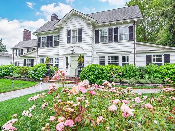 Welcome to one of Glen Ridge's most spectacular homes. This unique Colonial set on an acre of flat lawn (ideal for pool and tennis court) boasts 6,000 sq ft and is located steps away from coveted Glen Ridge schools, Montclair restaurants and commuter train stations. With 3 large living rooms, 6 bedrooms, 4 baths, and 2 powder rooms, the estate-like home combines lux living and elegant entertainment space. Chef-style kitchen with large island, Wolf double ovens, Wolf 6-burner gas range, Sub-Zero fridge, drink and wine fridge, butler pantry AND adjoining playroom/eating space. One light-drenched family room overlooks backyard and features custom millwork and massive ceilings. Another boasts mahogany walls and coffered ceilings, lodge-style gas FP, and magnificent bar w/ matching stools. The spectacular dining room features enclave shelving, custom window seat, and grand layout perfect for entertaining. Add'l 1st floor rooms include formal living room w/ FP, mudroom, powder room and office. Head up the newly carpeted front or back staircase to the second floor, featuring 5 spacious bedrooms, including primary suite w/ wood-burning FP and gorgeous marble bathroom w/ oversized tub, another bedroom w/ en-suite bath, and another w/ newly installed solarium/playroom. The 3rd floor hosts large bedroom, full bath and spacious laundry and storage room. Two finished basements provide versatile space: one w/ pool table and (fourth) FP; the other w/ playroom, wine cellar, and powder room.