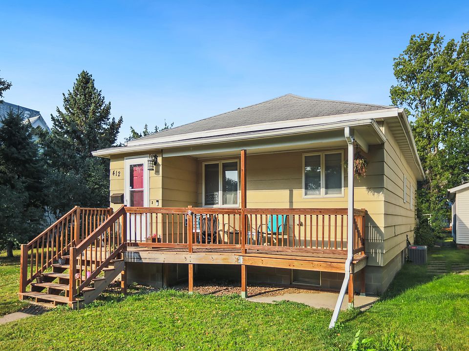 Welcome to this updated home located at 412 South Arch street. This property boasts an open concept living and kitchen space. You will love the massive dining room space. The main floor features 2 bedrooms with an additional 3 bedrooms(2 without egress) in the basement. The exterior has a stamped concrete patio with a completely fenced in yard and huge shed! Schedule your tour today!