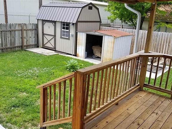 This adorable bungalow has just been rehabbed! All new paint, ceiling fans, window treatments, refinished hardwood floors, and so much more! This 3 bedroom, 1 bath home has a great finished loft upstairs that could be another bedroom. You will love the tall ceilings, columns into the dining room, pocket doors into the first bedroom, family room on the back, fenced yard, alley access...I could go on and on! The front features an off street driveway with a carport in the backyard off of the alley and two storage sheds in the fenced backyard. Enjoy the evenings on the covered back deck or covered front porch. Sellers are licensed Realtors in the State of Kansas.