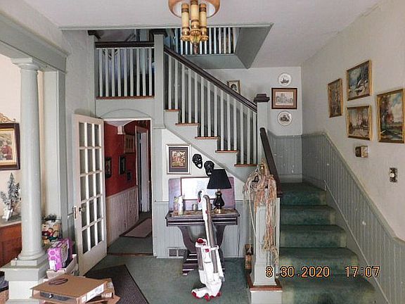 Great neighborhood, walk to a park, the library, church, and downtown! This is a great home to entertain in. Wrap around porch opens into a large foyer offset by the living room and music room with with bay windows. The back hall leads into the dining room and large kitchen with lots of cabinets. Master BR down stairs and 4 BRs upstairs with 1 bath. And don't forget the view from the balcony! Fresh paint in the bedrooms upstairs! Added pics of the 4 bedrooms upstairs and large hallway!