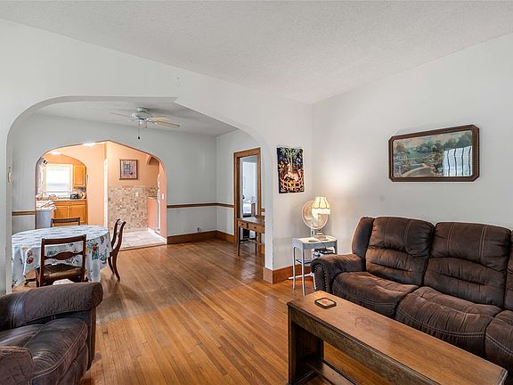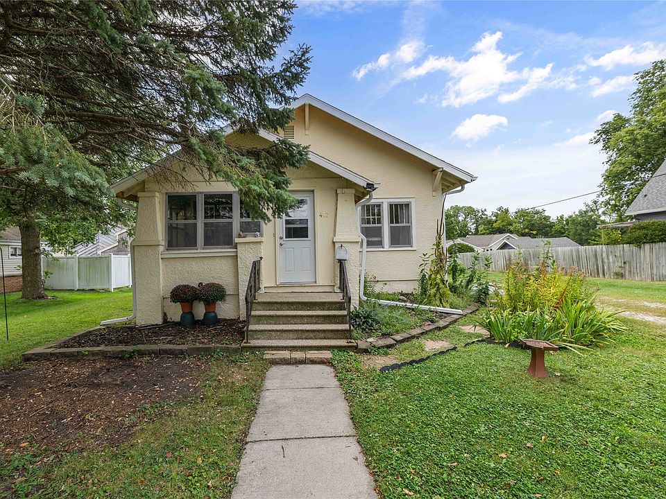 Step into this delightful 2 bedroom, 1 bath bungalow. Built in 1915 and rich in character, the brick fireplace adds to its vintage appeal, while the open layout offers a modern touch. Original hardwood floors flow through the living spaces and the kitchen and bath are modernly updated. Relax in the enclosed porch or in the cozy, fenced backyard. 1 car detached garage provides additional storage. Don't overlook the timeless charm this home offers!