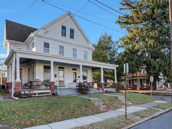 Located in Historic Mechanicsburg Borough, this cute 3 bedroom semi-detached home with wraparound porch and fenced rear yard can be yours! As you enter from the front porch, you will love the high ceilings, large windows and hardwood flooring. There is a main living room with decorative faux fireplace, a second living/family room, a dining room and then the kitchen that has a door to enclosed porch and private fenced rear yard with paver patio. The 2nd floor has 3 bedrooms, full bath and a full walk-up attic (39x12) for an abundance of storage. HVAC system (efficient natural gas heat with central air) installed in 2017, electric panel is 200 amp, water softener system owned, and basement has outside access. Two parking spaces behind fenced yard (off alley) or park on opposite side of Market Street.