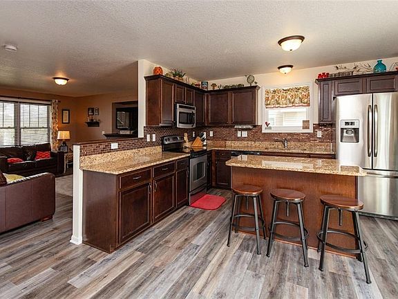 Welcome to this stunning two story home located in Grimes. Great location with easy access to the interstate and just a short drive to everything Grimes has to offer. Walking into the home, you have beautiful laminate floors that flow throughout the main level right into your living space off the entry with a cozy fireplace. Kitchen is right off the living space with ample storage space and stainless steel appliances. Large kitchen island with extra counter space and seating for 3. Dining space right off the kitchen that looks into your extra bonus room that could be another living space, large dining space, or playroom! Upstairs, there are 4 bedrooms including the master with ensuite and walk-in closet. Down the finished walkout basement, theres another living space with wet bar and 3/4 bathroom. Outside, there is a large deck overlooking the spacious yard with patio space and storage shed. All information obtained from Seller and public records.