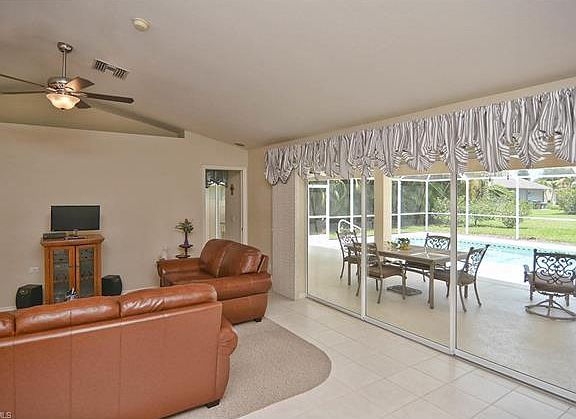 Beautiful 4 bedroom pool home located in the sought after area of SE Cape. The moment you walk thru the double door entry you will notice the well thought out open concept floor plan featuring over 1800 Sq ft of living space. The spacious Living/family room is perfect for entertaining with soaring ceilings and pocketed sliders that open onto the lanai and pool area. A chefs kitchen with breakfast bar and upgraded stainless steel appliances and a large pantry. Dining room perfect for large family dinners or gatherings. The Master bedroom features 2 walk in closets and a master bath with dual sinks, over sized walk in shower. 3 spacious guest bedrooms and a guest bath/pool bath. The sliders in the Master bedroom, Family room and breakfast nook lead onto a large screened Lanai overlooking the pool. Owners pride shows thru out this home it is truly move in ready! Some of the many upgrades include: new water heater, pool pump, upgraded appliances, New flooring, Upgraded lighting fixtures. inside laundry room with extra storage, extra wide driveway and over-sized garage,Sprinkler system, City water and sewer, all assessments paid.