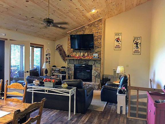 15th FAIRWAY with LONG RANGE VIEWS - 2 story 4 Bedroom with LEVEL entry. 18'X28' Great Room,Dining, Kitchen, M.Bedroom & Bath - main floor. Three Bedrooms, Two Baths (one whirlpool)Laundry & 10' X 12' storage room - Lower Floor. Storage room has extra refrigerator - could be sheet rocked and carpeted for 5th Bedroom or Den/Office. VERY PRIVATE - across the street from the 15th FAIRWAY and a fountain filled POND - listen to the water sounds from the rear bedrooms.Front bedrooms have views and CREEK sounds from the neighboring creek. Paved Circular driveway will park 4 to 5 cars. Cleanspaced BSMT Huge Rhododendrons give great PRIVACY. Metal Clearestory Roof ( 2008) gives the home good curb appeal.Two bedrooms have long range views. Home abuts one vacant lot and an undeveloped 95 acre tract below. If you are a walker - walk to the club for lunch or dinner. You may also use the club cart paths in the evenings and winter as a HIKING PARK. Four bedroom septic system saves on the monthly sewer bill. 6 large Floor to ceiling casement windows and a full view door access the views.