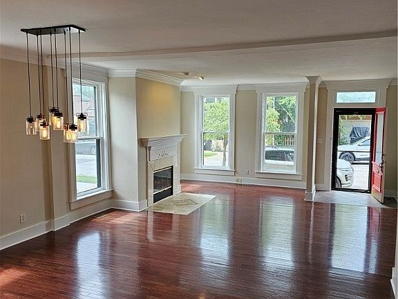 IMMEDIATE POSSESSION! Beautiful Federal Style Home w/oversized 1 car garage/off street parking. Large living room w/ gas fireplace, cherry wood floor, crown mold, dining room, updated 1/2 bath with tile floor, bonus room (could be a bedroom) with skylight, big utility room with mechanical closet, delightful eat in kitchen with granite and butcher block countertops and new appliances. Covered patio, courtyard with path to garage. Upstairs has 2 nice size bedrooms with good size closets, new carpet, updated full bath, with linen closet and tile floor. New roof on kitchen and patio, new skylight, home has been freshly painted, new storm door all in March of 2023, water heater 8/17/22, (2) HVAC systems June of 2022 and several ceiling fans. This home is ready and excited for its new owners!