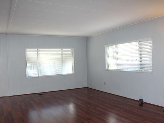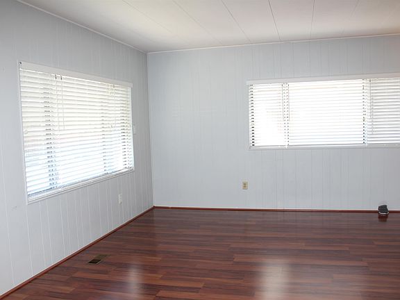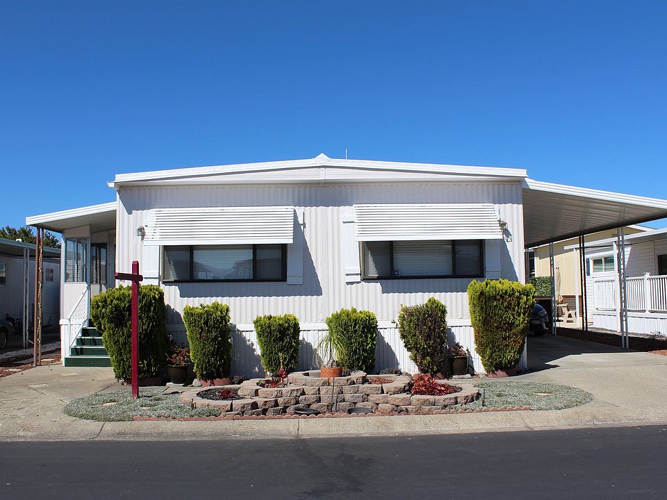 2 bedroom, 2 bath in Mission Bay! Spacious living room, dining area with chandelier, Kitchen with solid surface counters with refrigerator, cooktop, built in oven, & dishwasher. Separate family room space or multi purpose area and a built in bar area with washer & dryer hookups. Guest bedroom with walk in closet. Hall bath with newer vanity and counter, & stall shower. Primary bedroom, with mirrored closet doors & built in additional storage. Primary bath with double sinks, vanity, & tub shower. Laminate flooring throughout home, painted exterior, enclosed porch area, patio space, & storage shed. Short walk to clubhouse and guest parking.