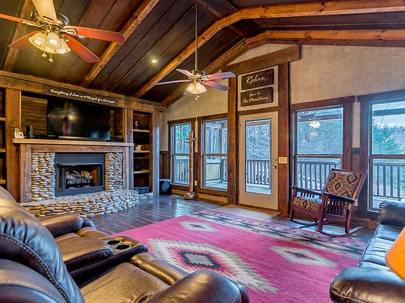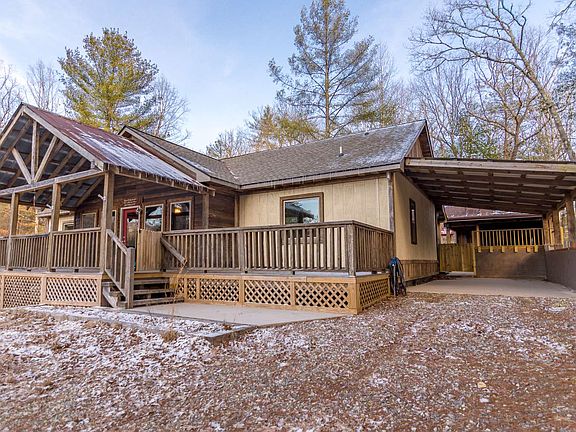 Looking for one level living? Located between Blue Ridge & /Blairsville, this home is loaded with charm! 3 bedrooms/2 baths, large great room w/fireplace, roomy dining area, and kitchen w/granite counters, stainless steel appliances & plenty of counter space. The master suite is perfect! Barn doors separate the large master bedroom area from the gorgeous master bath w/claw foot tub and tiled shower. There are two more bedrooms & a full bath and laundry room. Large windows throughout the house give you beautiful vistas & natural light. The outdoor area has a waterfall feature from the little "Rock City" house adjacent to a firepit. The wooden shed outside could be used as an outdoor cooking area or for extra storage. The acreage is fenced so that your pets have room to roam! Furnishings negotiable. Located approximately 10 miles off Hwy 515 with easy access (mostly paved roads, with only the last mile graveled).