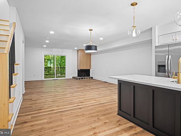 Step into contemporary living at its best with this fully renovated 3 bedroom, 2.5 bathroom townhome, where style meets function. The sleek, brand new kitchen is a showstopper, featuring white cabinetry, stainless steel appliances, including a refrigerator, stove with microwave above, dishwasher, and pantry cabinet, along with stunning quartz countertops. The 5-foot island, finished in black with an overhang, is perfect for casual dining and entertaining. The powder room features a herringbone marble tile floor, while the spacious living and dining areas are designed for entertaining, opening up to a private deck through a slider. Make your way up the beautifully crafted staircase, enhanced by a skylight that floods the space with natural light, to discover the primary suite. This retreat includes two closets, one a walk-in and an en-suite bathroom with a designer shower, tiled floor, and quartz topped vanity. Bedrooms 2 and 3 are equally inviting, each equipped with ceiling fans for added comfort. The hallway bath continues the home's modern vibe with its subway tiled walls, elegant flooring, and a gorgeous vanity. A second floor laundry room, complete with a brand new washer and dryer, adds convenience to your daily routine. The entire home features all new flooring and fresh interior paint, creating a seamless flow from room to room. The large, finished walk-out basement offers endless possibilities, a cozy family room, a vibrant play area, or even the ultimate man cave. The home backs up to a wooded area, providing a beautiful setting and a sense of privacy. The community enhances your lifestyle with amenities such as a pool, kiddie pool, playground, tennis and basketball courts, making it easy to enjoy outdoor activities close to home. FHA financing is available with spot approval.