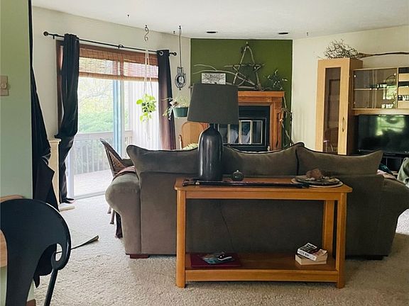Unique property/beautiful setting. Artsy. Stucco EIK w/ hand painted/designed cabinets. Large windows thruout for natural light. Open LR & DR. Patio doors in LR offer due West vue w/ spectacular sunsets. Enjoy log burning custom red oak mantle Fireplace in cooler months. Half Bath 1st Floor w/ custom paint/design. Large Master Bedroom w/ Double Door and Cathedral Ceiling. Custom Wall Painting. 2nd BR West Exposure. Ext has two Decks, Front is a great space for relaxing and Side for Entertaining. Bsmt space for craft/work table. Stackable Washer/Dryer. 2 Car Integral. Close to major highways, PA Turnpike, Parks, Healthcare Facilities, Shopping, Restaurants & Entertainment.