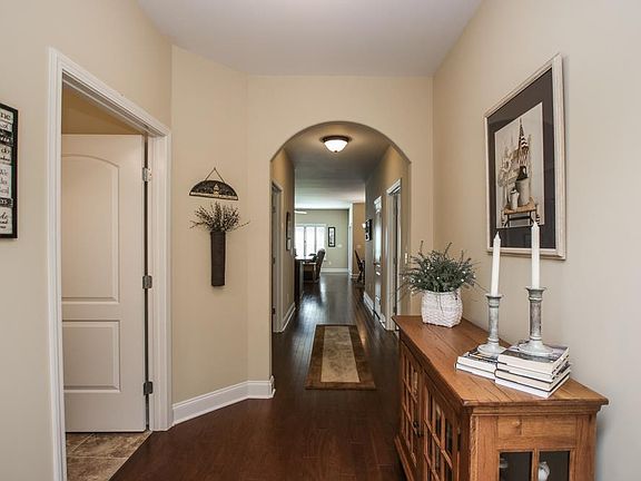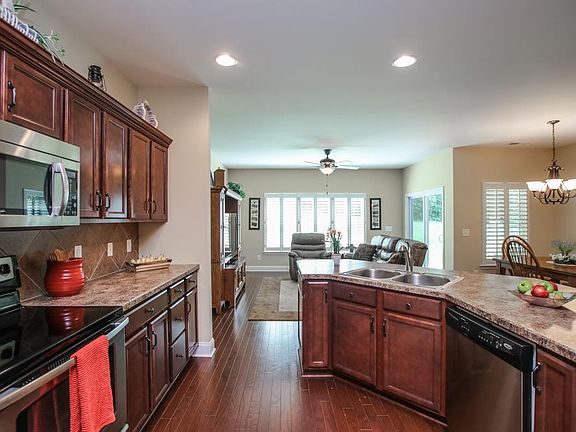 Open floor plan with hardwood floors, Office/flex room w/ French doors. Luxurious Owners Suite w/ trey ceiling-walk in closet & tile shower. Plantation shutters, stainless steel appliances, laundry room with cabinets,Storage, 21x10 Covered Patio. Beautiful setting backs to trees,