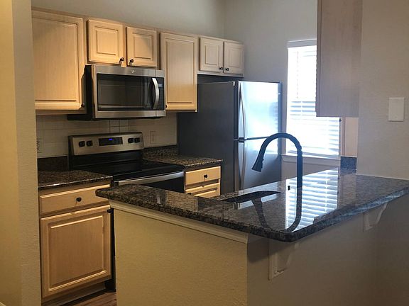 Elegantly upgraded one bedroom one bath condo in the charming community of Residences at Sabal Point. This spacious GROUND floor home boasts an open and grand living and dining room plan allowing you to stay connected to your guests while you prepare meals in your well-appointed kitchen with beautiful dark granite counters and almost new stainless steel appliances. You will find rustic wood look luxury vinyl plank flooring in the living, dining, and bedroom space as well as ceramic tile flooring in the kitchen, laundry, and bathroom. A serene screened lanai is located off of your living room and storage is abundant with a large walk in closet off of the entryway, a spacious walk in closet in the bedroom, a linen closet in the bathroom, along with a large vanity with tons of counter space. There is also an optional garage available to lease for an additional monthly fee. A washer and dryer, updated lighting, and ceiling fans throughout complete this lovely home. Community amenities that you may also enjoy include a resort style, solar heated pool, fitness center, and a lighted tennis court. Owner is responsible for water, sewer, trash, pest control. Tenant is responsible for electric, cable, internet, and renter's liability insurance. No smoking, and no commercial vehicles permitted per condo rules.