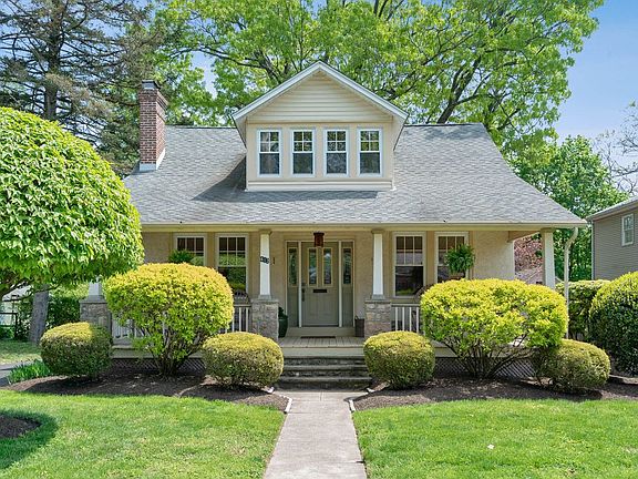 This gorgeous Craftsman style home boasts wonderful architectural details, including a gorgeous expansive front porch, detailed woodwork and moldings and original bright gleaming hardwood floors. While maintaining its charming design, the home also offers many modern amenities such as central air, two full baths, an updated kitchen with plenty of storage, and an incredible sunroom overlooking a lovely, private backyard. Mature landscaping frames the welcoming front porch, which spans the entire width of the home. The custom front door is the perfect welcome to this lovely home. Enter into the spacious foyer, a rarity in a bungalow. A bright living room featuring wainscoting, crown molding, and a wood burning fireplace is the spot for entertaining. The living room flows into the beautifully decorated dining room, ideal for large gatherings. Beautiful French doors separate the living room and dining room. A well designed kitchen is located in the rear of the home with an abundance of counter space. There is also plenty of room for storage, including a built-in pantry and coffee bar, as well as a built-in table for casual meals. Off the kitchen is a light filled three season room where you will want to spend plenty of time relaxing. There is room for dining and lounging and custom screens allow for you to open when it's nice out, or close when desired. Continuing on the main level, the front room is a perfect den with an adjacent wet bar area and wine fridge, and also a full bathroom. This space is great for entertaining, but could also serve as a perfect playroom or guest room with the nearby bathroom. The upper level offers three bedrooms and a full bathroom. The master bedroom features a ceiling fan, built-in shelving, and a large wardrobe. The additional bedrooms both offer plenty of closet space. The updated hall bathroom offers dual sinks and plenty of storage. The basement offers laundry, additional storage space and outside access. Outside, the yard is absolutely fantastic offering mature fauna, large paved area for dining, and much more. The detached two car garage also included additional attic storage space. This one of a kind home, located in award winning Wissahickon SD, is ready for you to move right in and enjoy!