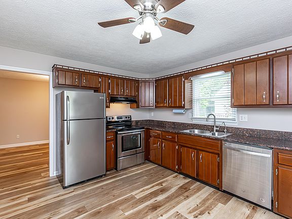 OPEN HOUSE 5-7 TODAY the 21st FRIDAY. Welcome home! This stunning split-level home on a corner lot is conveniently located just a stroll away from the city park. The spacious kitchen comes fully equipped with stainless appliances. Venture up a short flight of stairs to find 3 bedrooms and 2 full baths. The outdoor area is an entertainer's dream with a fenced yard, large, covered patio, and a swimming pool that is open and ready for summer fun. The generous two car garage provides ample space for parking or a workspace. Large, fenced lot. This home won't last long being located in the heart of the nation's famous bourbon trail.