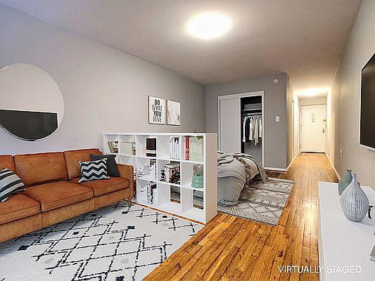 RENOVATED & LARGE Chelsea studio ; Live-in Super & Laundry Bldg ; International Renters Welcome OPEN HOUSE WED 1/12 5:00 - 6:15PM BUZZ #4E TO STOP BY The studio is very spacious with room to create a living area while still have room for a queen size bed with dresser. Updated kitchen with full size appliances, dishwasher, built in microwave and tons of cabinets. The kitchen is completely separate (rare for most studios in the area) with dishwasher, large sink, microwave and tons of counter space. The updated bathroom has tasteful vanity sink, light fixture and tiles. Location is very convenient for commuting and enjoy NYC living. Just 1 block to the C & E trains and the High Line! Two blocks from the crosstown buses to take you anywhere from 12th Ave to FDR Drive. Great coffee and brunch place, Citizen, right across the street. Couple supermarkets within 2-5 blocks radius. Fast & Seamless Approval Process; can move in asap. This is a 13or16_mth-lease-term.