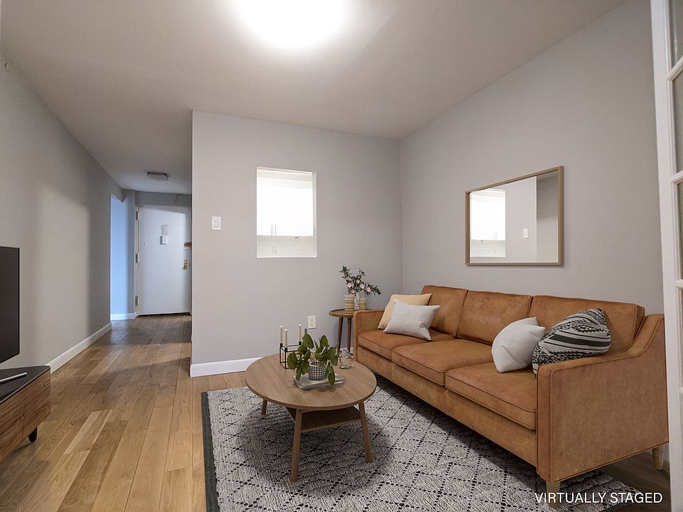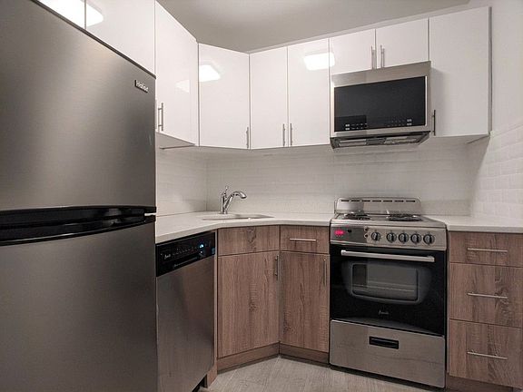 Gut Renovated 2 Bedrooms Duplex ; 1.5 Baths ; Live-in Super & Laundry Bldg * International Renters Welcome ; Guarantors Accepted * Completely renovated semi-open kitchen with quartz counter, stainless steel appliances, plenty of countertop and cabinet spaces. Much needed dishwasher with built-in microwave. Both bedrooms can fit a queen sized bed with room for dresser & nightstand. Living area is large enough to fit a full size couch, coffee table, small dining table & tv. One bedroom is on the ground level while the other is on the lower level. Feels like 2 apartments combined as the lower level has enough space for a separate living area, rare walk-in closet plus a half bath. Come and see this large duplex with 2 separate entrances.