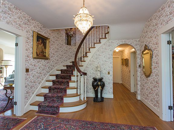 Historic Downtown home on large lot with many original features including leaded glass windows, french doors, picture tile fireplace, period lighting, period tile bathroom, oak floors, the list goes on! Shown to prequalified buyers, by appointment only. 4 bedrooms plus 2 sunrooms, study with fireplace, main level master, unfinished basement and 4th floor. Beautiful landscaping and rock work, private patio, detached garage, paved parking