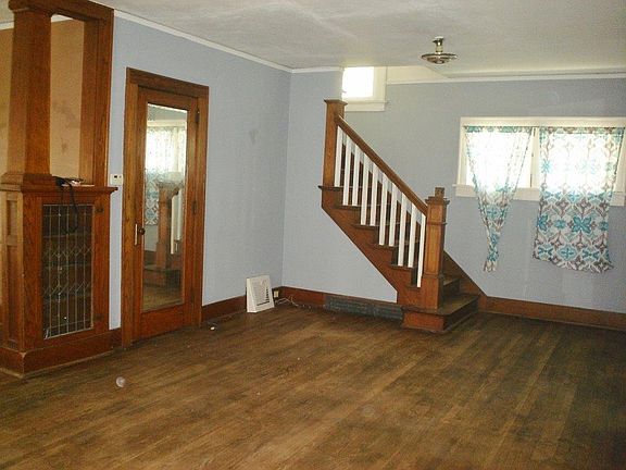 A little polish will make this large home Shine! 3 bedrooms & full bath on second floor and additional space in floored walk-up attic. Character plus in open stairs & wood columns between living rom & dining with lead glass doors. Enclosed front porch. (Being Sold As Is- no warranties expressed or implied.)
