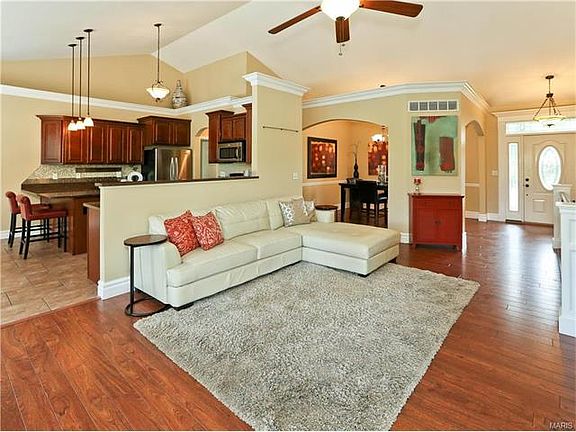 Awesome quality built Turner home with so many extras! Gorgeous 5 BEDROOM/3 FULL BATH with WALK OUT FINISHED BASEMENT AND THREE CAR GARAGE. Entry foyer opens to very open floor plan featuring a spacious living room with GAS FIREPLACE, WALL OF WINDOWS, vaulted ceiling and hardwood flooring. Formal dining room features crown molding and arched entry ways. You will love the kitchen with CUSTOM CABINETS, GRANITE COUNTER TOPS, STAINLESS APPLIANCES AND TILE BACKSPLASH! Breakfast area has wall of windows overlooking private back yard. Master suite features large bedroom with trey ceiling, Master bath with SEPARATE SHOWER, WHIRLPOOL TUB AND DUAL BOWL VANITY. SPLIT BEDROOM FLOOR PLAN. Bedrooms 2/3 are separated by the 2nd full bathroom. Lower level walk out is finished with large family room, awesome WET BAR area and Bedrooms 4 and 5. Third full bath is in the lower level for pool and bedroom convenience. LARGE DECK AND COVERED PATIO overlook the fabulous back yard with INGROUND SWIMMING POOL!