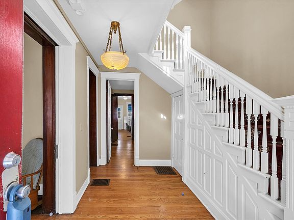 This property, originally a three-flat, has been beautifully opened up to offer 12 bedrooms, 4 full & 5 1/2 baths, 3 kitchens and 3 laundry hookups. Enjoy the wrap-around porch, charming attic space, and finished basement. Featuring large windows, a spiral staircase, ornate ceiling tiles, and hardwood floors, it's full of original historical character. Renovations in 2013 included, brand-new plumbing, three separate heating systems, and new water service to the city main. This unique space is perfect for residental or as an investment opportunity!