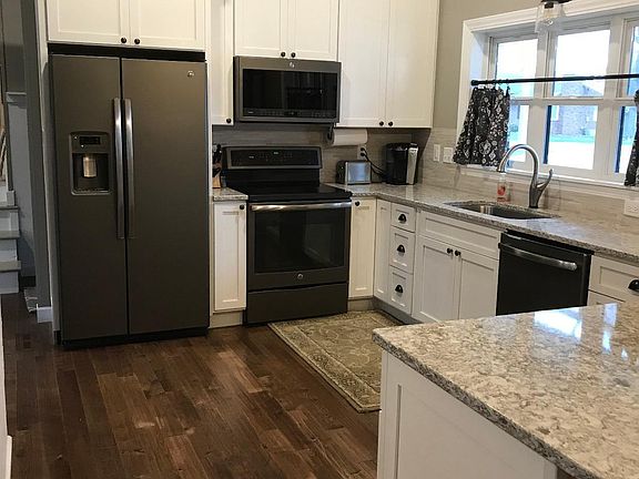 Nestled in the woods this remodeled home is move-in ready. Since 2015 a beautiful new white kitchen with all new stainless steel appliances and quartz counter tops have been installed. A great quartz eating bar is perfect for eating or homework. The main floor has new hardwood floors, lights, and a tiled fireplace. The master bedroom has a new bathroom with a tiled shower. In addition to all these new features the lower level has also been remodeled. The sliding doors off the family room lead to a patio with a new hot tub. Enjoy relaxing in the hot tub while enjoying the beautiful trees during all seasons. The partially fenced back yard is a bonus! Please call an agent today to view this remodeled home nestled on a wooded lot.