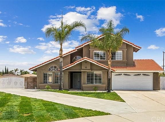 This spacious POOL home has been freshly updated and has so much to offer. Formal living room upon entry, vaulted two-story ceilings with built-in surround sound speakers leading to the nearby formal dining room. As you continue towards the rear of the home you'll find the nicely-sized kitchen featuring granite countertops, a gas range, built-in microwave, recessed lighting, and lots of storage. Just off of the kitchen is the breakfast nook area, a nearby built-in desk/workstation, and the family room complete with a gas fireplace and sliding door access to the covered patio and rear yard. Highly sought after downstairs bedroom with brand new carpeting and ceiling fan, nearby 1/2 bath with upgraded granite vanity and decorative glass sink, and nearby indoor laundry room. Many upgrades throughout including fresh exterior paint, brand new carpeting in all of the bedrooms and upstairs hall, neutral interior paint, and neutral tile flooring throughout most of the downstairs. Up the beautiful hardwood staircase you'll find the remaining 3 bedrooms, two of which are at the front of the home, both are nicely sized with new carpeting and have a shared bath with an oversized granite vanity and shower/tub combo. The master suite also features new carpeting, vaulted ceilings with a ceiling fan, as well as an ensuite bath with granite vanity with double sinks, shower/tub combo with a large, custom overhead shower head, and a walk-in closet. The oversized, private rear yard is complete with a large lighted patio cover, sparkling pool with removable pool fencing, storage shed, and gated RV side parking. Both front and rear yards have brand new landscaping as well as a brand new sprinkler system. 2 car garage with dual driveways providing unobstructed access to the gated RV parking. Conveniently located to nearby shopping, schools, freeway access, and walking distance to Simpson Elementary School.