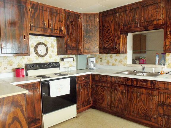 - KITCHEN: Wood Cabinets, Formica Counters, Eating Area
