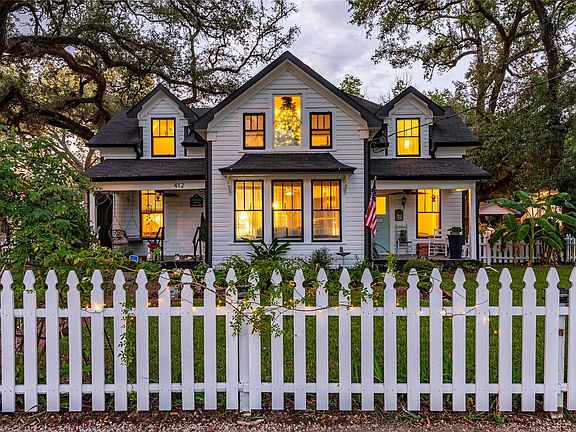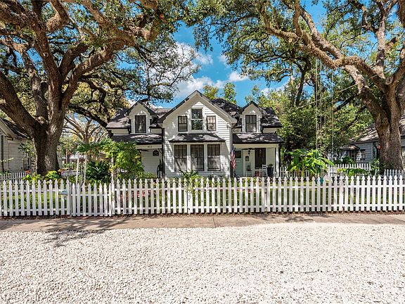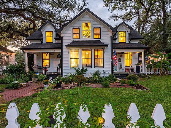 A beautiful piece of architectural history located in the heart of Alvin’s historic district. This timeless property has been thoughtfully updated to offer modern comfort while preserving its original character. The primary suite and flex/bedroom with a secondary bath are on the first floor. Upstairs offers 3 bedrooms, a bath, library, and game room. The guest cottage sits above the detached garage and features a living area, 1 bedroom, bathroom with new tile & a walk in shower & full-size kitchen. The home sits on an oversized lot with parking access from 2 driveways. Outdoor living is just as inviting, with a new white picket fence, majestic oak trees, a patio area covered in flagstone and a fire pit. Updates include: a full electric rehab in main house, guest apt & garage. Water heater in main house 2019, tankless in guest apt 2020, leveled foundation 2025, AC replaced downstairs 2023, upstairs 2018, plumbing, exterior paint, gutters and french drains. This home is a rare gem!