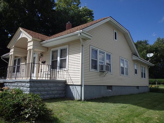 Must see this Sear's original Crescent model bungalow style home. This 3 bedroom 1 bath home has lots of special appeal. The front door with sidelights and windows invites guests with its covered front porch supported by its graceful columns. The interior of the home has 3 bedrooms all with hardwood floors and 1 full bath with vinyl flooring. The home has a oversized living room which is connected to the dining area. The kitchen has wood cupboards that has lots of storage, and room for a small table and chairs and vinyl flooring. All kitchen appliances and washer and dryer stay. This house has lots of closet space and ample storage. The unfinished basement has the laundry area and more storage. The home also features a 2 car detached garage built in 2011. Both home and garage have new roof 2014 and siding in 2011. The home is being sold As Is for estimated repairs on the basement foundation.
