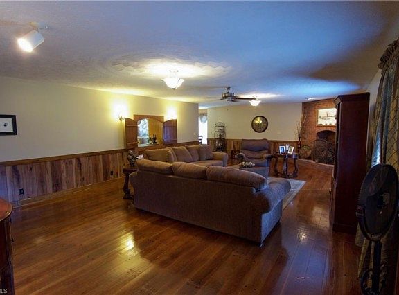 Lush manicured lawn & landscape frame this lovely ranch home with a curved stone wall framing the drive in. The natural wide plank wood floors gleam showing the loving care the owners have given them. Room sizes are unbelievable giving plenty of room for large furniture pieces. For the men looking for a man cave or for the ladies wanting her special space check out the work shop! Garage has built in storage cabinets. Connecting the garage and workshop is a two tiered deck. 1 YEAR HOME WARRANTY!