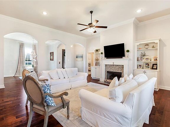 Exceptionally well maintained home. Blinds on windows included as well as refrigerator, fenced backyard, home has gutters, 3 cm slab granite in kitchen & all baths, breakfast area & desk nook, wood shelving in pantry & closet, easy lawn maintenance. Stainless appliances, wood floors in living, dining and halls,fireplace, mud room off garage, no siding, covered brick patio w/fenced yard Lots of bright light. Low utilities. Lots of green space in the neighborhood with majestic Oak tress, Community pool.