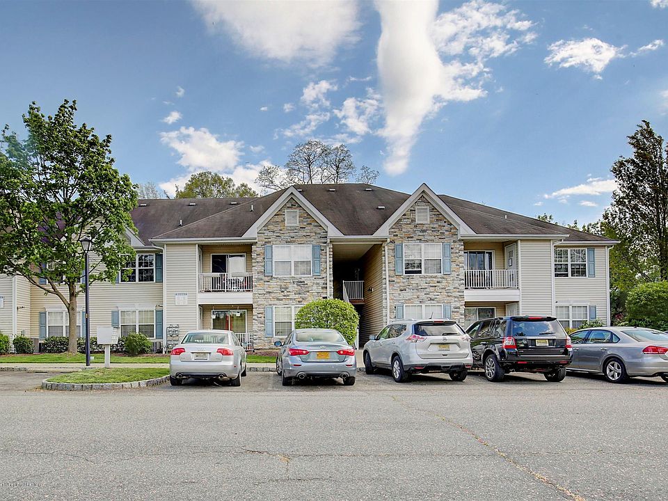 *IMMACULATE* Bright & Clean Lower Level unit! Open Layout, NEW wood flooring in Living & Dining rooms & NEWER carpeting in both bedrooms. NEWER tile in Kitchen & NEW Refrigerator. Fully Remodeled Master Bathroom! Spacious master bed w/private bathroom, & his/her closet. Perfect location to Jersey Shore Beaches & Minutes from the Train, Bus, and Ferry services to New York City. This condo backs up to the woods for complete privacy! PLEASE VIEW 360 VIRTUAL TOUR BEFORE SCHEDULING IN PERSON APPT.