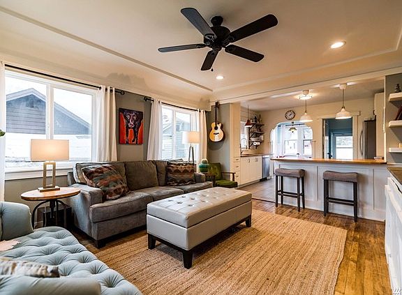 Lovingly updated York neighborhood home across from Franklin Park. Light and bright sitting room and kitchen have open concept, with eat in bar and sunny breakfast nook. Two good sized bedrooms. Remodeled bathroom. Basement with laundry room, plenty of storage and possible third bedroom or office. Additional attic storage. Private fenced backyard with raised garden beds. Detached one car garage and alley parking. Conveniently located downtown, walking distance to shopping and dining.